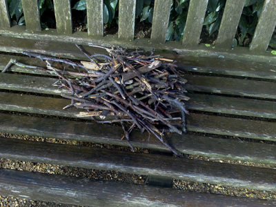 twigs on a park bench