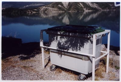 Wheelie bin resting under a tree