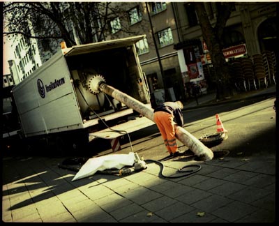 Man vacuums street