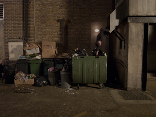 Man falls into wheelie bin