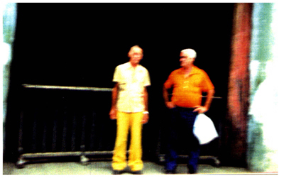 Two men one holding a plastic bag